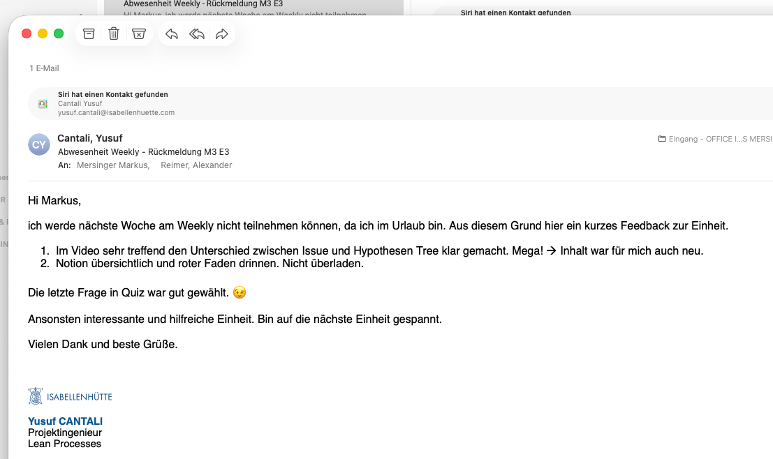 Die Zusammenarbeit mit Markus Mersinger war für mich persönlich eine absolute Bereicherung. Durch seine tiefgehende Expertise im Lean-Management und seine praxisnahen Methoden konnten wir nicht nur unsere Prozesse optimieren, sondern auch eine nachhaltige Kultur der kontinuierlichen Verbesserung etablieren. Seine Fähigkeit komplexe Herausforderungen verständlich zu machen, gepaart mit seiner motivierenden Art als Mentor, hat unser Team inspiriert und nachhaltig weiterentwickelt.